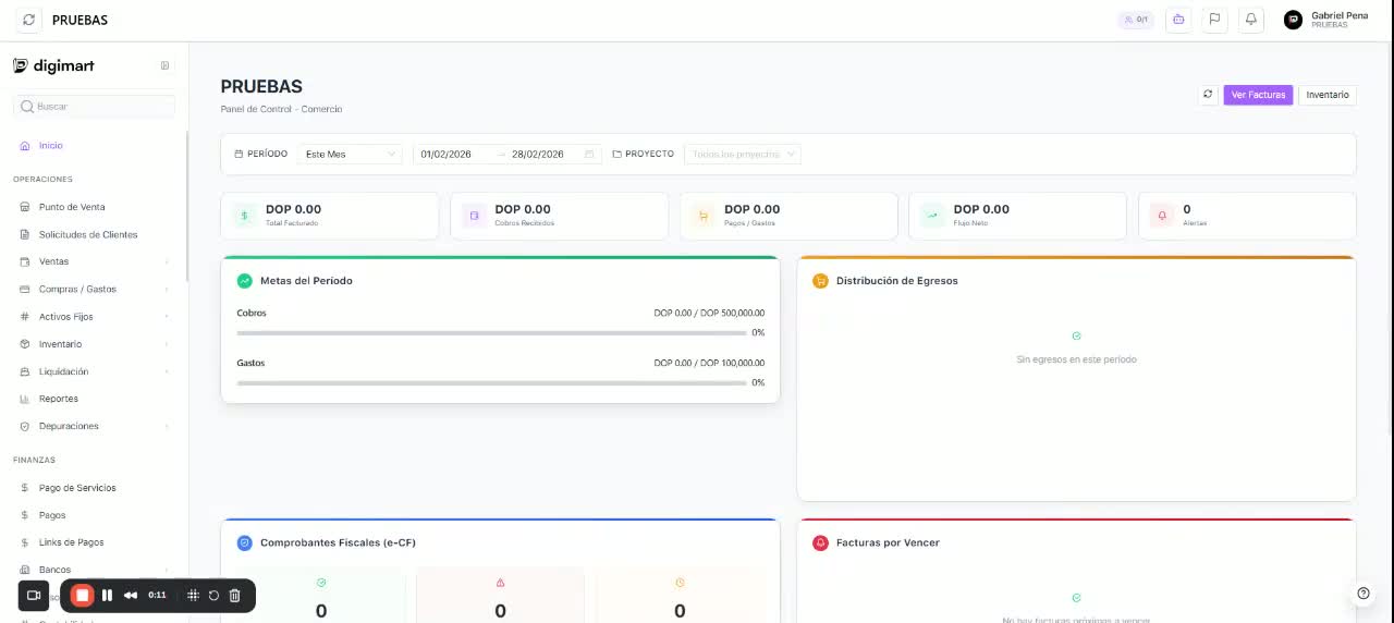 - Bienvenida al Dashboard principal de Digimart.